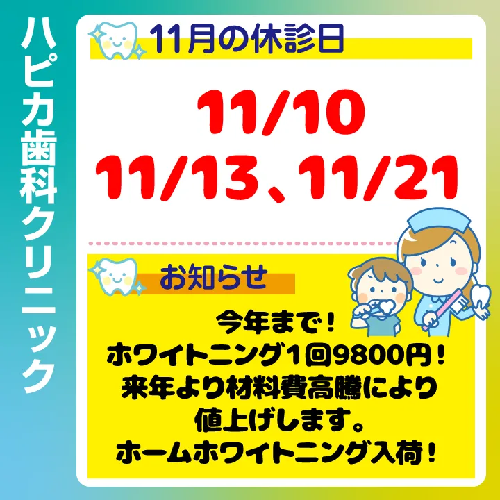 • 伊丹市・伊丹駅の歯医者 ハピカ歯科クリニックからのお知らせ