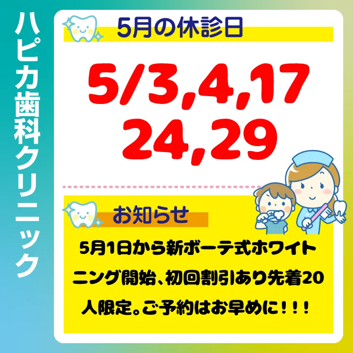• 伊丹市・伊丹駅の歯医者 ハピカ歯科クリニックからのお知らせ